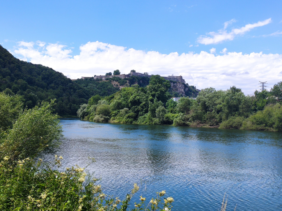 Notre journée débute parfaitement avec une longue descente jusqu’à Clerval et sous le soleil. Aujourd’hui encore, notre trajet se déroule essentiellement sur une piste cyclable longeant le Doubs.