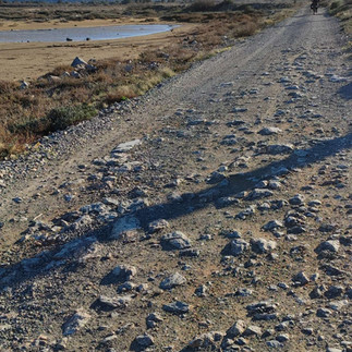 Revenons à la piste foutage de gueule…après au moins 10km, plus de chemin, mais la rive d'un étang. Le chemin est inondé. Ne souhaitant pas nager, on contourne tant bien que mal à travers un sentier de sable recouvert de joncs. Et au miracle, une route.