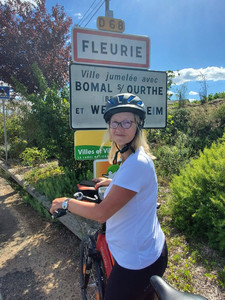 Après notre pause déjeuner dans les hauteurs mâconnaises, nous engageons nos montures dans le Beaujolais verdoyant. Les vignerons s’affairent sur des tracteurs géants. C’est l’époque de l’élagage pour éclaircir les vignes. Les montées se succèdent avec des vues de plus en plus spectaculaires sur des appellations beaujolaises connues : Chénas, Juliénas, Moulin à Vent, St-Amour, Chiroubles, Morgon, Fleurie… au total, 12 appellations, 10 crus.. qui l’eût cru ?