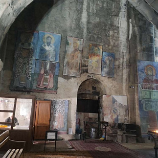 La route continue vers Aghtala, autre joyau à fresques murales d’une beauté saisissante et qui mériterait un coup de pouce financier car les fresques se dégradent. Ce lieu nous rappelle un souvenir de 2015 : un cycliste allemand, identifiable à ses sacoches Ortlieb, reliait Fribourg à la Nouvelle-Zélande. Nous avions suivi ses aventures et appris qu’il avait atteint son but l’année suivante. Autre anecdote locale : on raconte qu'un membre de la famille proche du général de Gaulle aurait travaillé dans les mines voisines. Mythe ou vérité ? L’histoire reste nébuleuse. En tous les cas, cette mine aurait livré le cuivre ayant permis la construction de la statue de la Liberté visible à New York !